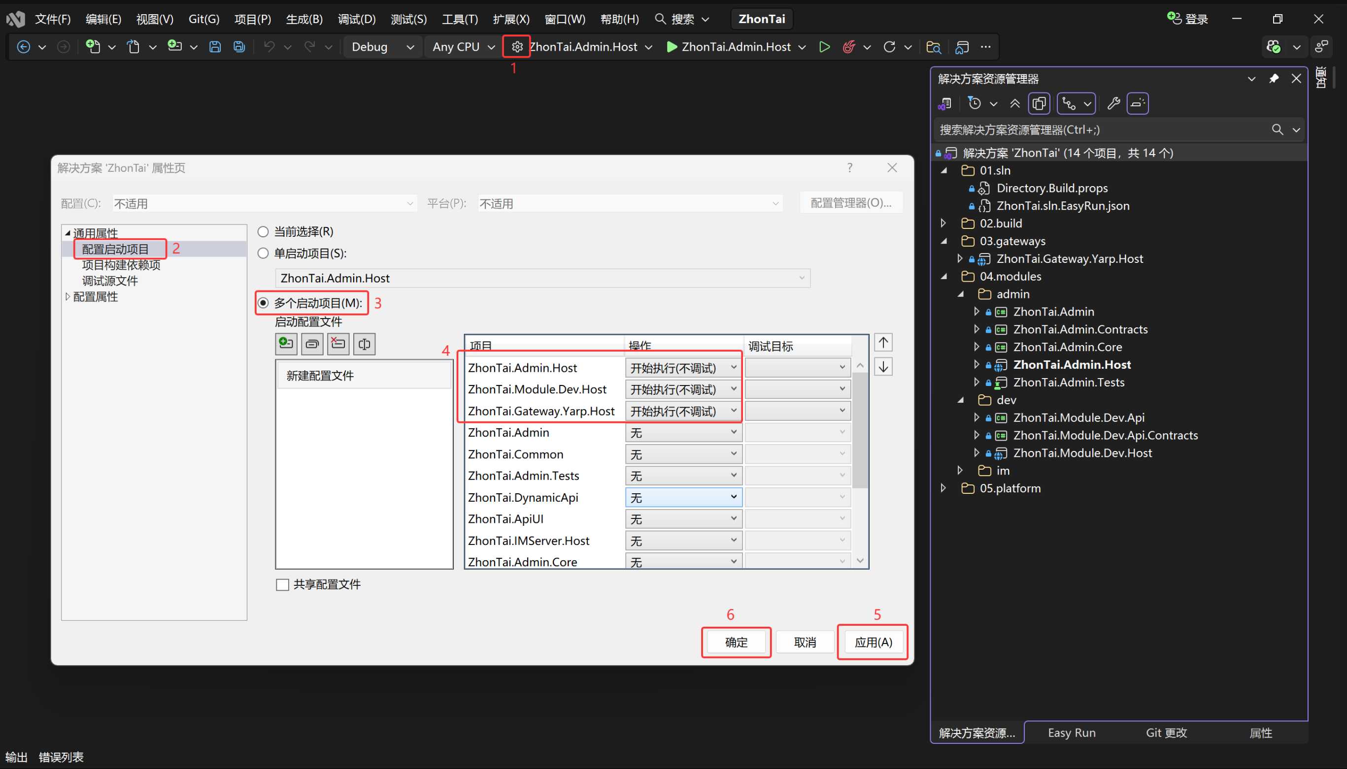 }源码项目,在01.sln/ZhonTai.sln.EasyRun.json中配置